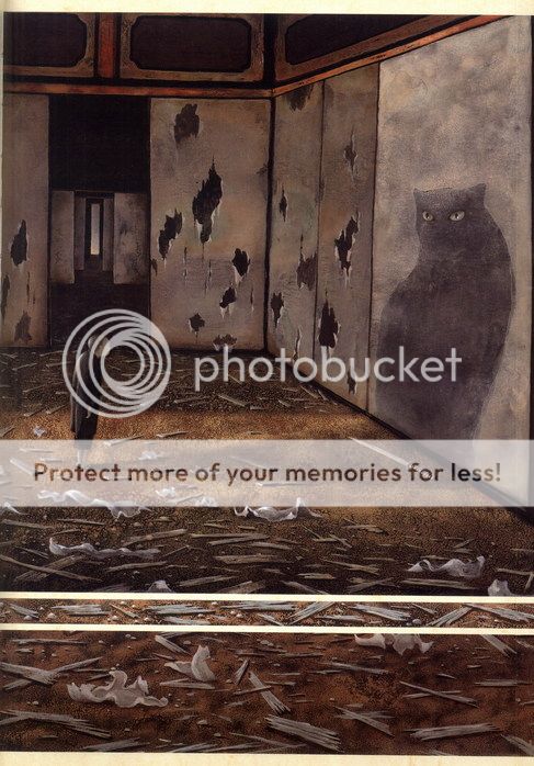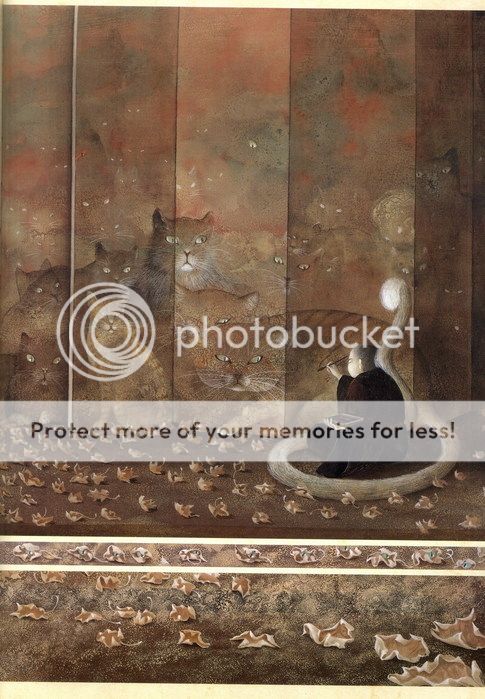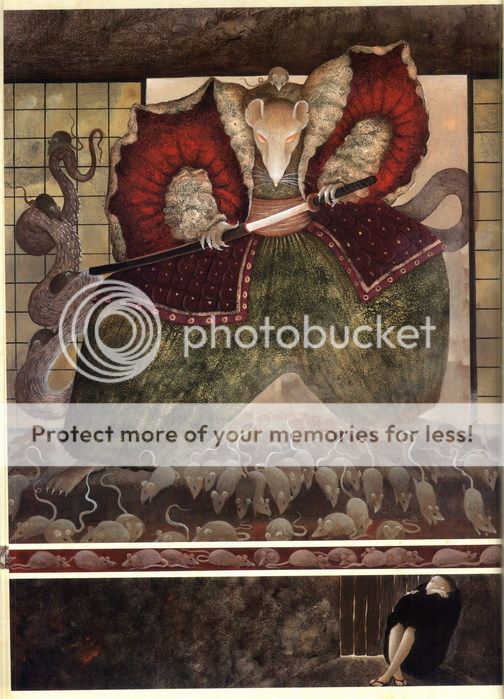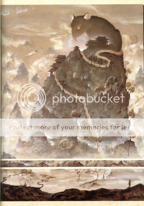 夜裡廟中傳來震耳的打鬥和尖叫之聲,小和尚發著抖等聲音平息,悄悄拉開拉門,看到大殿上有隻比小牛還大的巨鼠死屍,血跡斑斑,他疑惑誰有能殺了這鼠妖,才看到自己在屏風上畫的幾隻貓,嘴邊紅漬還未乾。